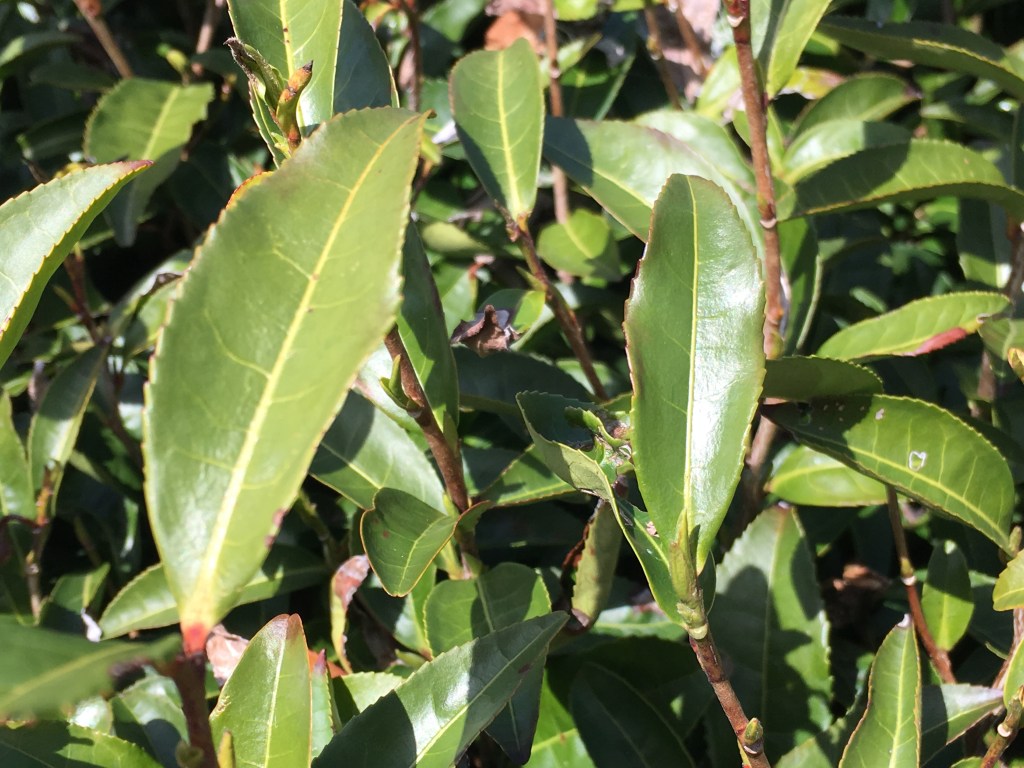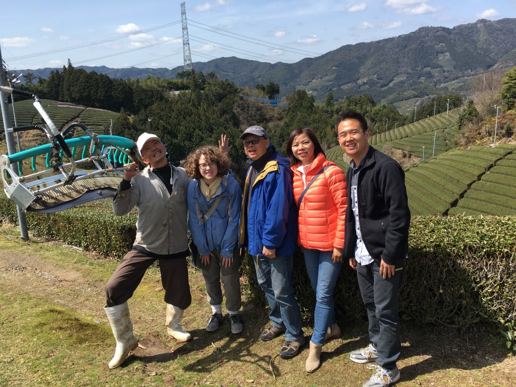 During the tour we met Akky-san, the affable proprietor of the farm. He was the most pleasantly goofy and friendly person you could ever hope to meet. He posed with us for some photos in front of the fields. They demonstrated how they cut the tops of the tea hedges. They even gifted everyone with a thin piece of stone from the tea soil and some spent tea seed pods.