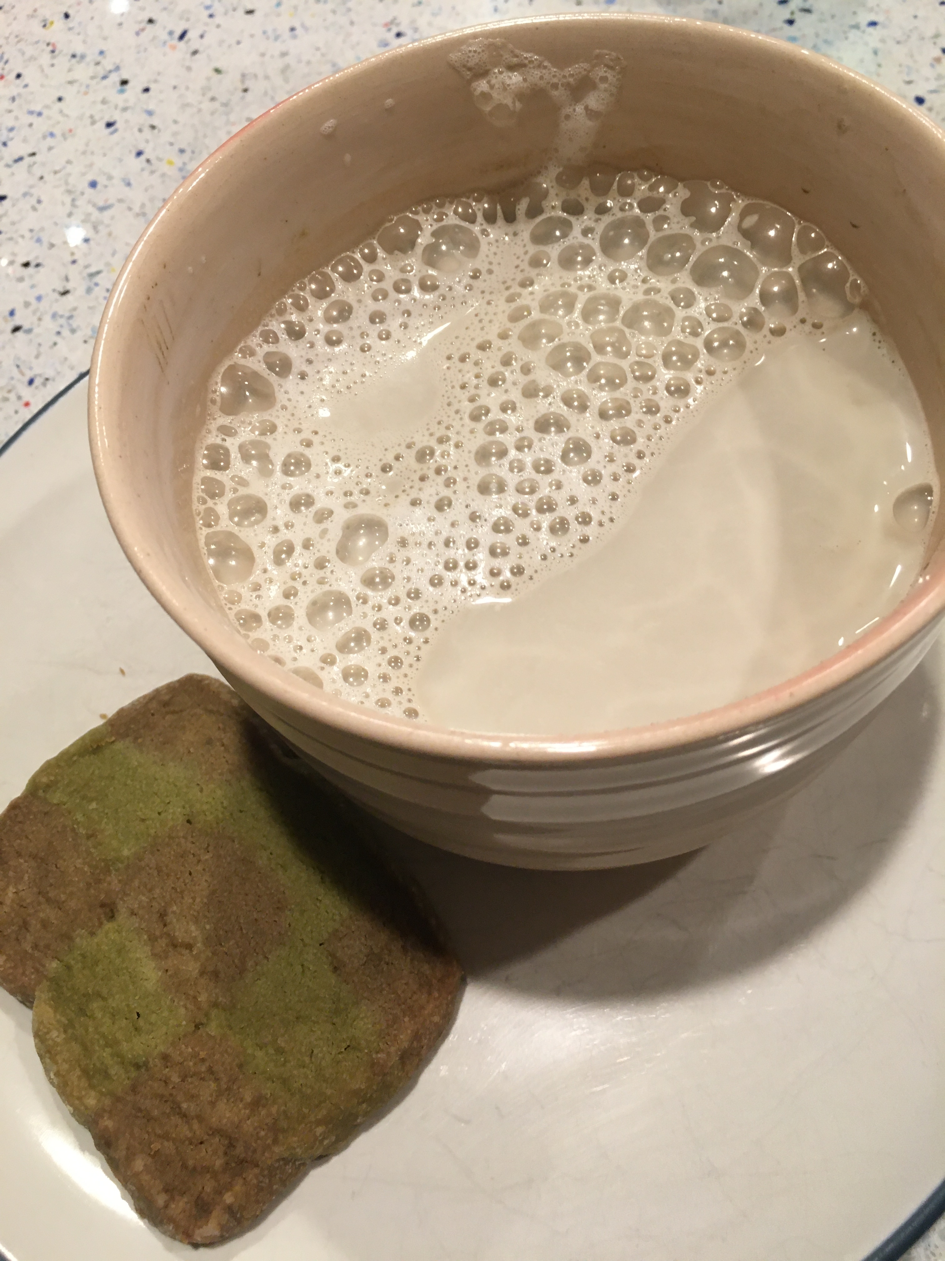Another powder that is gaining more popularity in the west is hojicha powder. Despite the color, hojicha is also a green tea. It is considered green because it doesn’t go through the full oxidation process that black teas do. It was invented by a Kyoto tea merchant in the 1920’s who wanted to be more resourceful with the twigs and stems leftover from the tea making process. He decided that roasting them would make for an attractive option that was different from the grassy and vegetative notes of sencha. This imparted a lovely sweet smoky nutty flavor that soon became a staple of cafes all over Japan. I used my sample from Obubu a while ago, but recently purchased a large pouch from a new company that specializes in hojicha. Pictured below are some matcha and hojicha checkerboard shortbread cookies and a hojicha latte. So rich and and comforting in the winter!