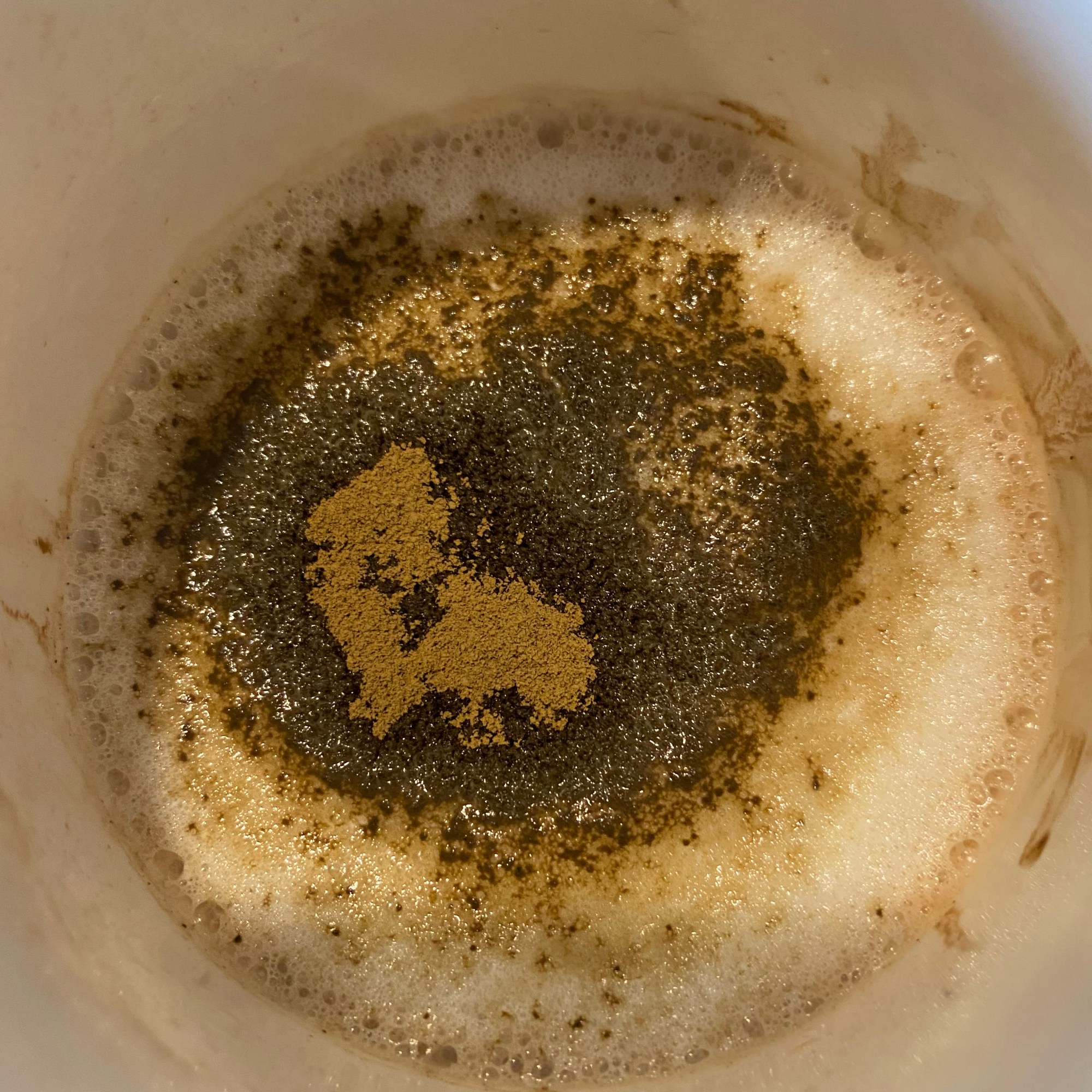 Sift hojicha and cocoa powders into small mug (mine was a bit large for this recipe). Add sugar and boiled water. Mix until fully dissolved. Heat milk in microwave or your preferred heating method until just warm to touch (you don’t want to scald it). Use a milk frother to make foam. Add milk using the back of a spoon to control the flow and save foam for the top. Add a sprinkle of hojicha powder to the top to enhance toasty tea flavor and aroma. Enjoy the rich flavors of hojicha and cocoa!