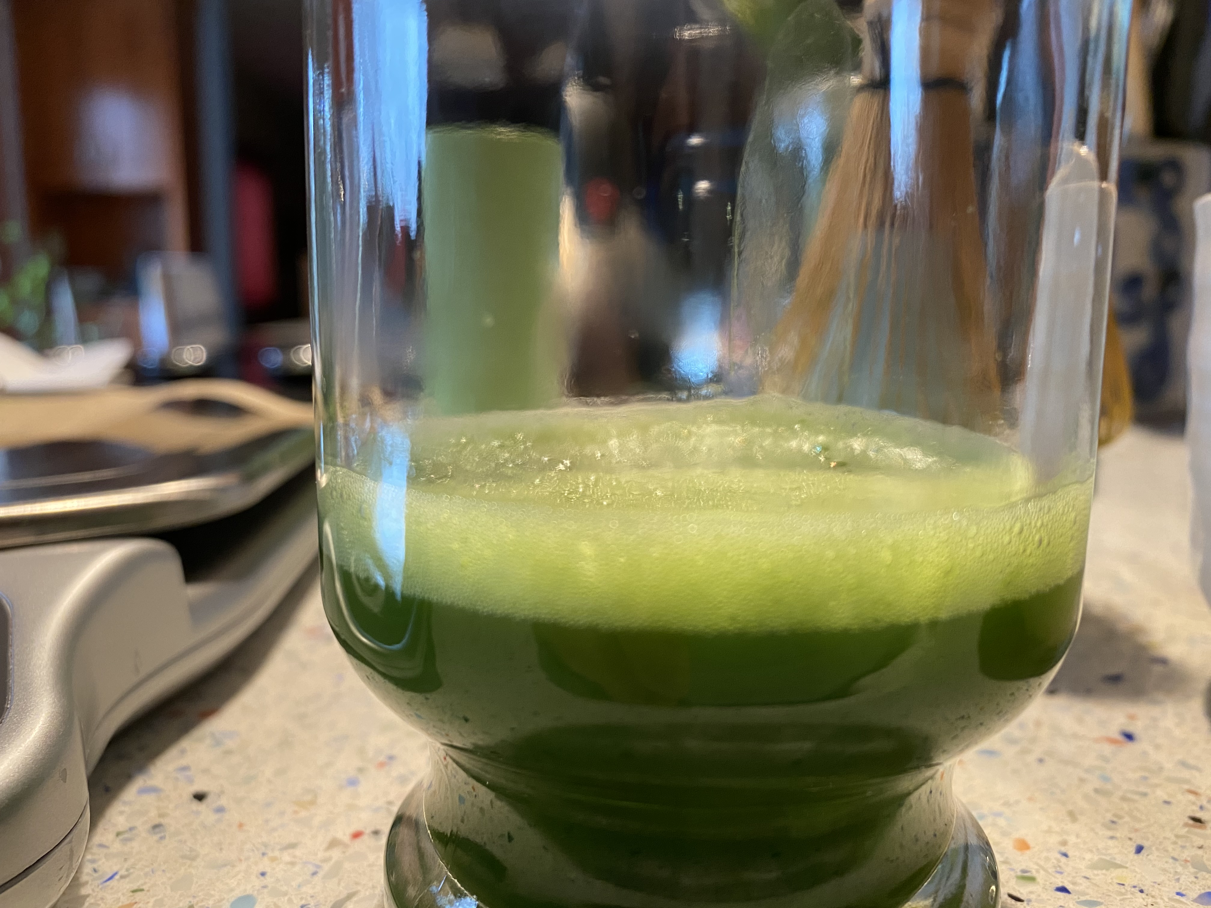 I have been a big matcha fan for a long time, but I’m embarrassed to say I never really followed the “proper” way to prepare it. I wanted to do it right this time because they are both such high-quality matcha. After doing some research, it seemed that the most traditional way was to use about 1-1.5 grams of matcha per about 70 ml. of not too hot (around 160 F) water. This may seem like a small amount of both matcha and water. Frankly, it is. I think of it as similar to a shot of espresso in a way. Of course, it’s much more calming than that! Let me tell you, tea quality is important, but preparation can be even more so. That being said, it would look rather silly if a tea ceremony practitioner weighed out their matcha or meticulously measured their water. They just naturally guess appropriate amounts.