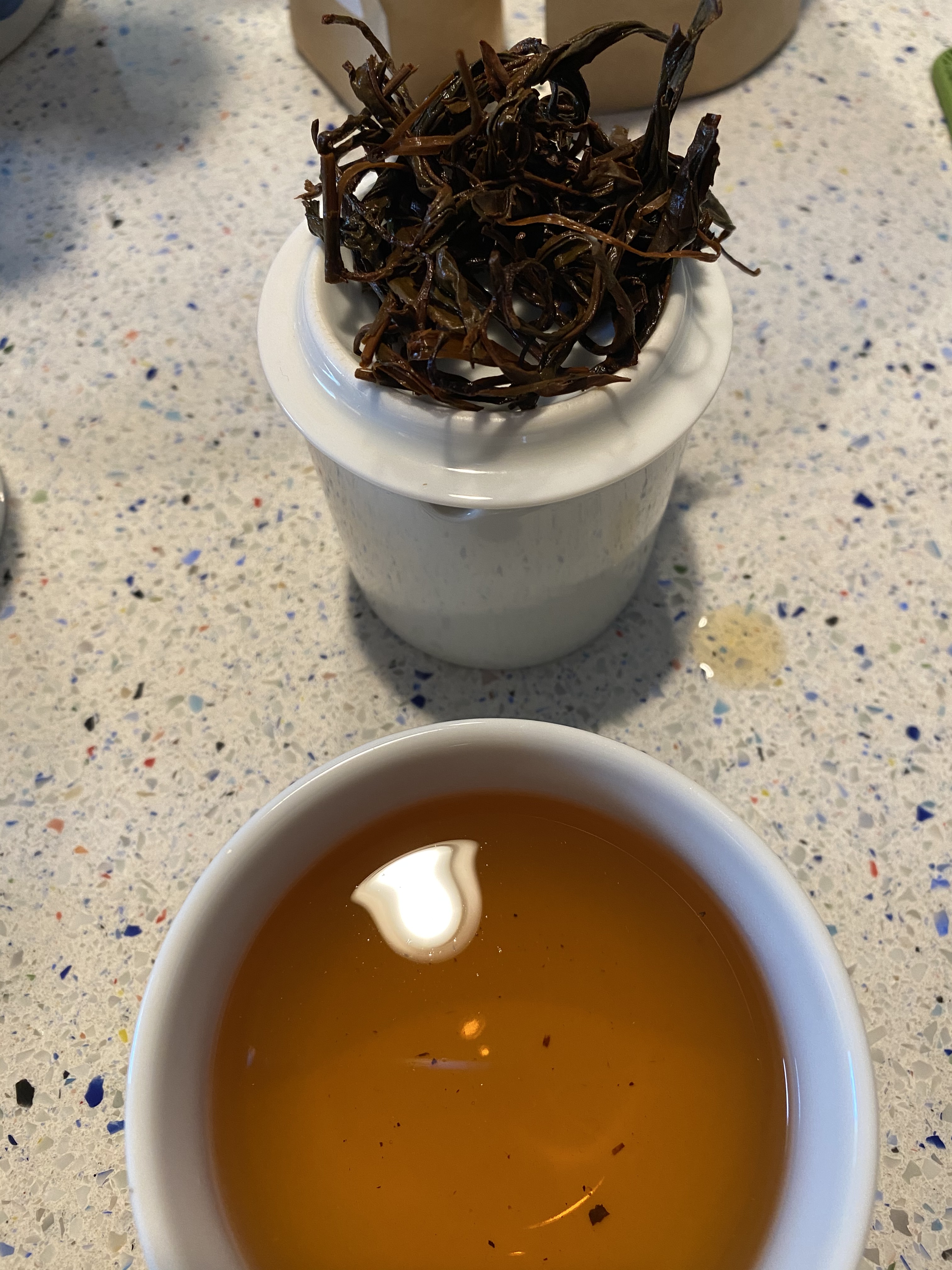 The last tea I tried was their black tea. I could tell by the aroma from the leaves that it would be similar to some Chinese black teas I’ve had in the past. I was right! It was very reminiscent to a keemun in that it had a sweet smokiness. It wasn’t super malty like an Assam might be. There were notes of warming spice like cinnamon and I even detected some poached pear notes, toasted nuts, and dark berries as well as a cocoa undertone. It was a little bit earthy and yet was just as easy to drink as the yellow and oolong were.