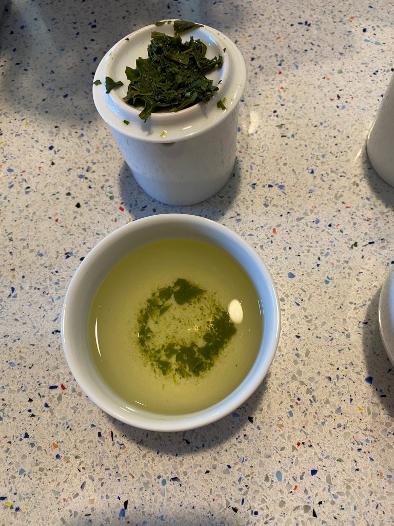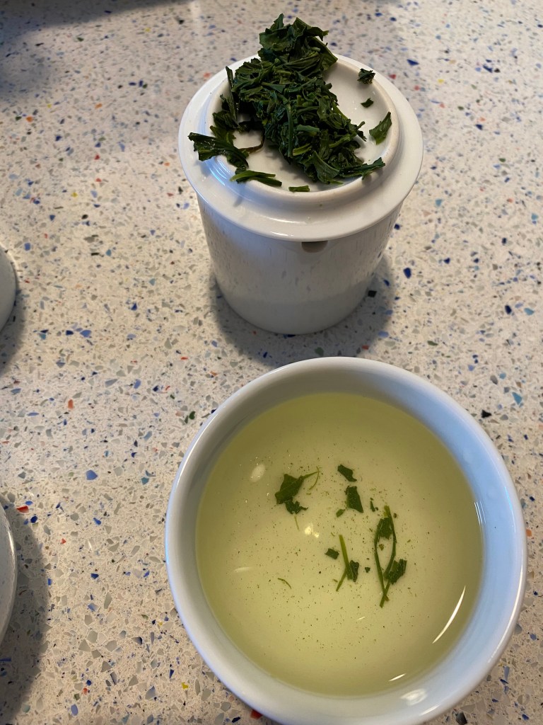 The Orchid Sencha is named as such because it is said to have a subtle orchid or general floral aroma. I don’t fully know what an orchid smells like (despite having one in my house), but I suppose it has a very slight floral aroma. It mostly smells sweet and vegetative in my opinion. It’s always easier for me to smell the leaves rather than the liquid of the tea. I hope to try honing in on this skill more and sharpen my sense of smell. Maybe I’ll do a separate post on that in the future.